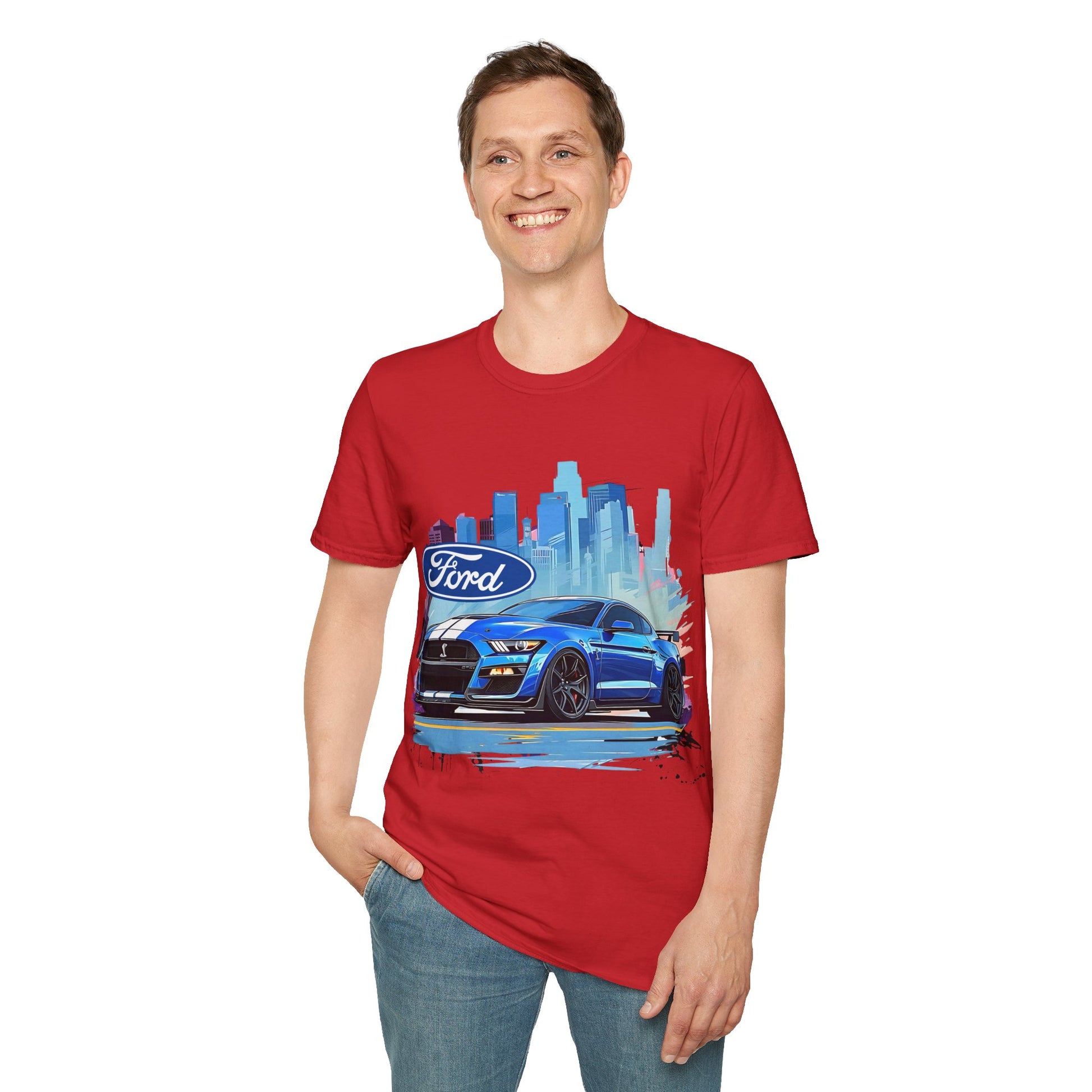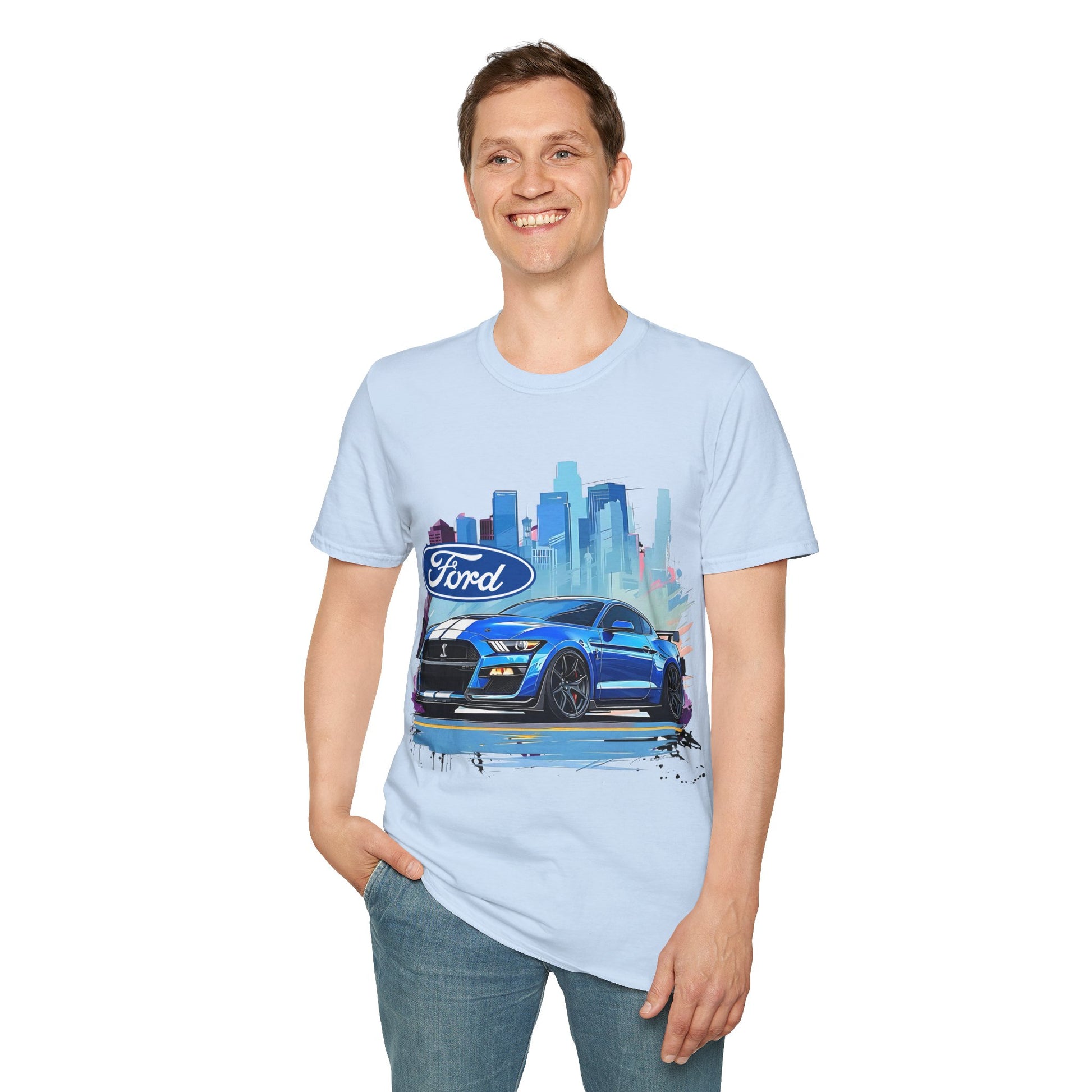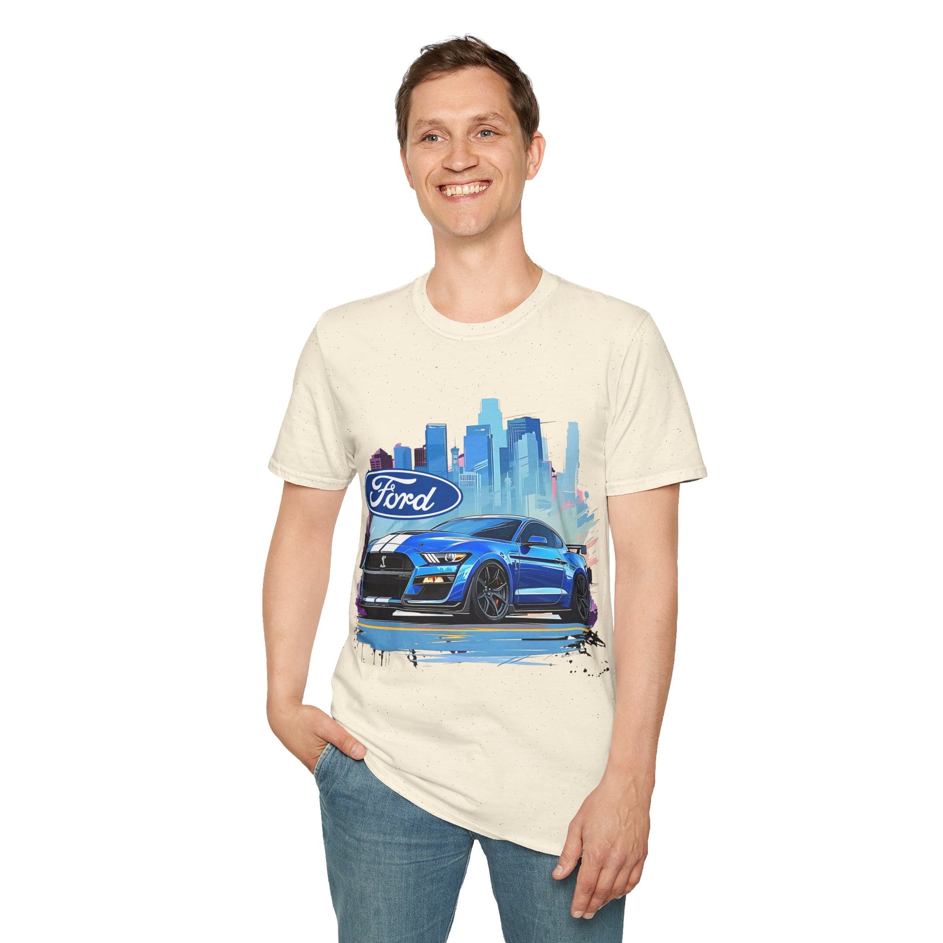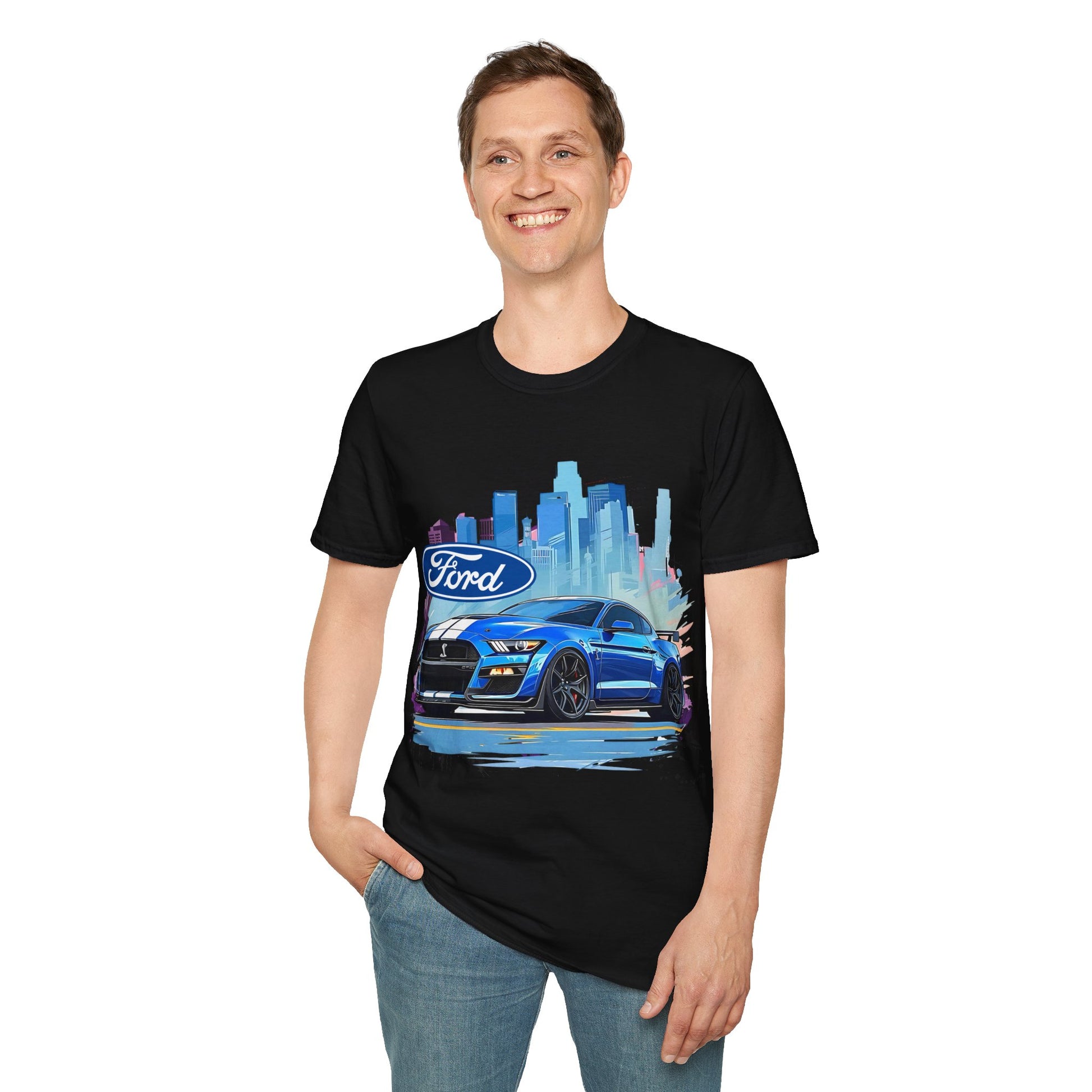 Ford Mustang Blue Sports Car T-Shirt — City Skyline Automotive Tee